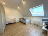 À l’étage, le palier dessert quatre chambres ainsi qu’une salle de bains complète avec baignoire, douche et WC.